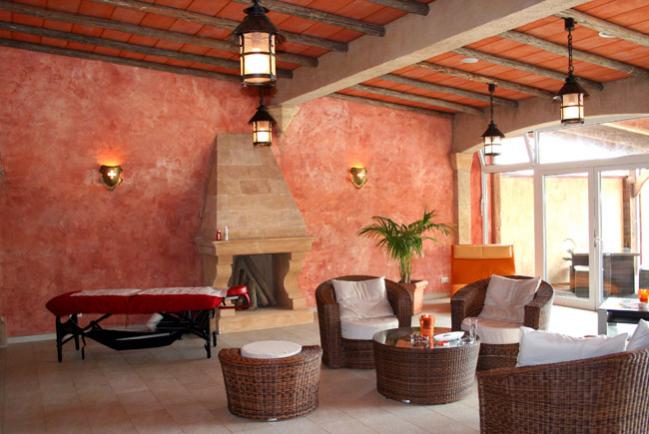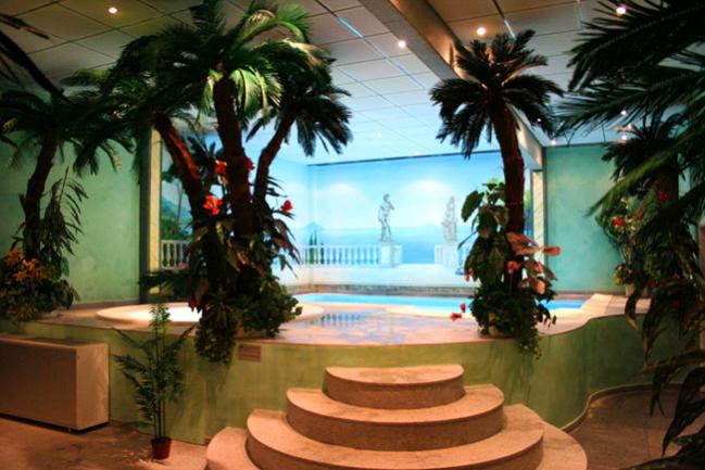 Durch den Korridor auf der linken Seite erreichst Du den recht grosszügigen Wellness-Bereich. Eventuell siehst Du dann rechts noch einige Girls in der Küche am Mittagessen. Nicht gerade so erotisch. Im Wellness-Bereich sind gerade rechts um die Ecke einige Duschen. Links sind ein Schaukelsofa und daneben ein Sauna. Aber Du hast vielleicht mehr Lust, rechts die kleine Treppe hoch zu gehen und im Pool ein wenig zu schwimmen. Das Wasser ist angenehm warm. Oder Du kletterst gleich in den strategisch gut gelegenen Whirlpool davor.