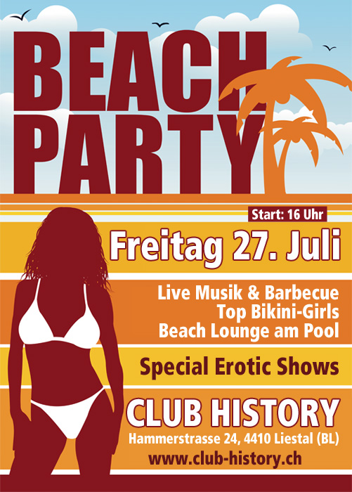 Nach meinem Besuch im Fkk-Palast in Freiburg, wollte ich auf der Heimreise unbedingt noch auf die Beach-party ins History. So trudelte ich gegen 21.30 Uhr in Liestal ein. Negativ stiess mir der zusätzliche Obulus zum Eintritt auf, der in der Beach-Party Werbung auf der Homepage nicht erwähnt wurde. Mir geht es nicht um ein paar Franken sondern um die Art- und Weise, wenn man mit verschwiegenen Zusatzkosten hintenherum berappt wird und der Kunde für doof gehalten wird.