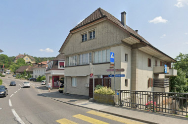 Parkieren kann man dahinter auf den Parkplätzen des Coop, das ist so vereinbart. Schön diskret ist das auch. Eingang dann bitte nicht auf der Längsseite des Gebäudes, sondern auf der Strassenseite durch die «braune Box», gleich neben der Brücke über den Bach.