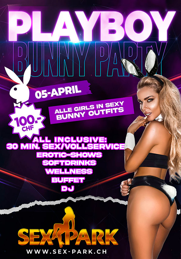 Wir feiern unsere legendäre Playboy-Bunny-Party und Du bist der VIP-Gast! Erlebe den Sexpark wie Hugh Hefner seine Playboy Mansion, umgeben von über 20 heißen Girls im Bunny-Outfit, die nur auf dich warten.
