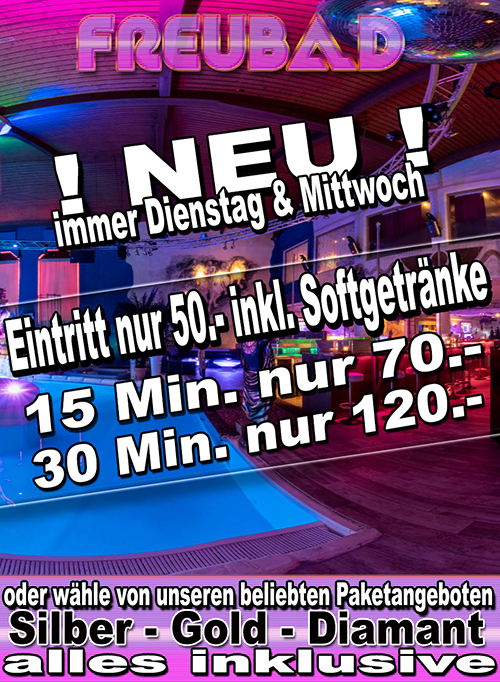 Freubad der grösste und führende FKK und Saunaclub der Schweiz im Kanton Solothurn nähe Bern. Zum Club gehören eine grosse Wellness Anlage und ein riesiger Outdoor Bereich, Garten und Pool. Im Freubad sind täglich ca. 50 sexy Top Girls mit leidenschaftlichem Girlfriend Sex.