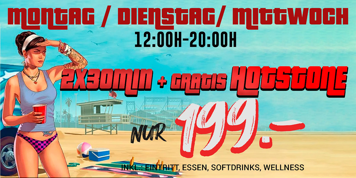 Vorweg muss ich erwähnen das ich ein Plan hatte wie ich mir den Nachmittag vor stellte. Zuerst würde ich mir ein Bier gönnen und die eine odere ander Dame kennen lernen, danach den Hunger stillen einbischen Wellnessen und als Dessert meine 30 min. Einlösen. Aber 1 kommt es anders und 2. Als man denkt.