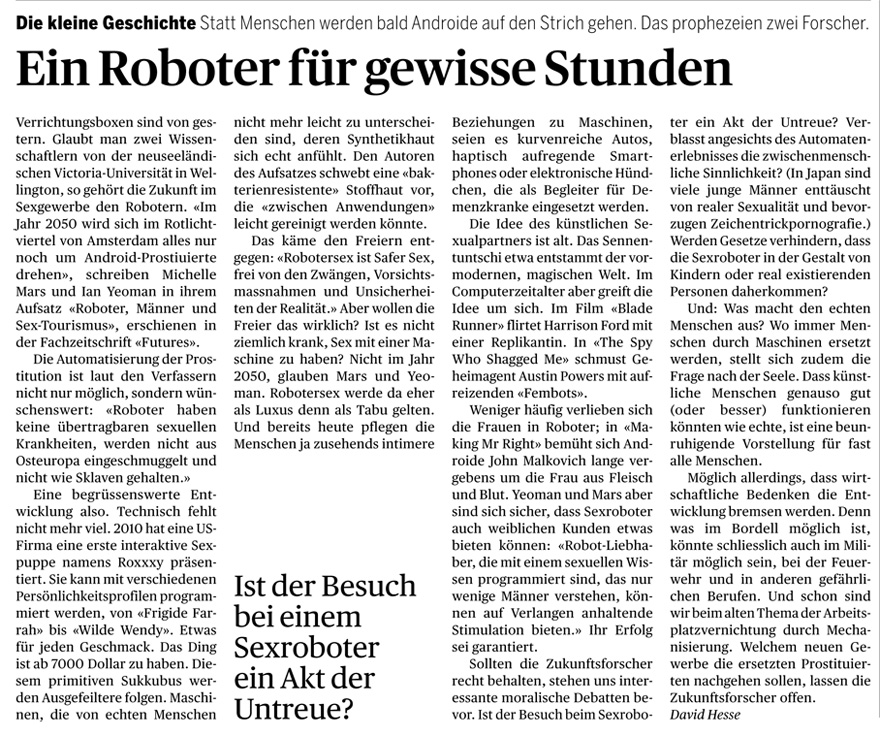 Du hast recht, diese ganze Diskussion ist doch eher hanebüchen, ich wüsste auch nicht, weshalb die Preise merklich sinken sollten, ob nun aus moralischen oder bwl-Gründen. Gerade in den Saunaclubs herrschen doch für alle gute Bedingungen, besonders natürlich im Globe.