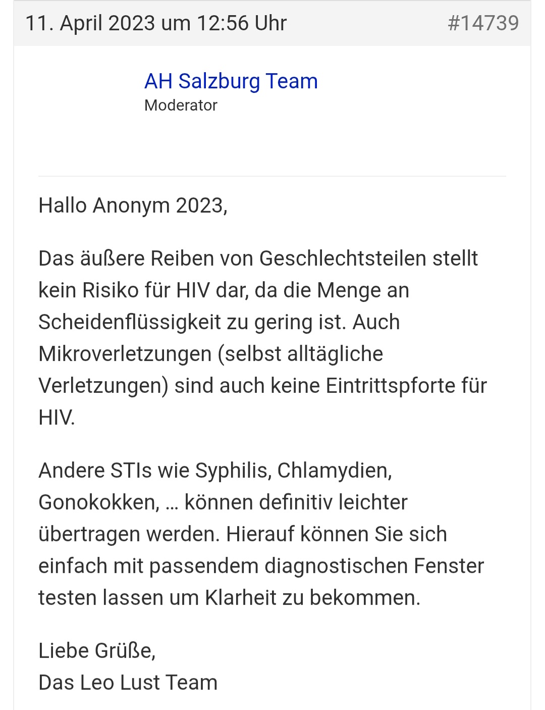 Schau mal was ich online von der AIDS Hilfe Salzburg gefunden habe: