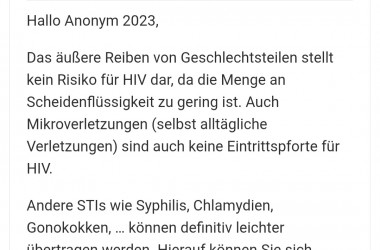 Wobei ich bei HPV ein Auge zudrücke, da Jeder 1,5. von uns HPV haben dürfte, bei der "Umsatzzahl" von Geschlechtspartnern.