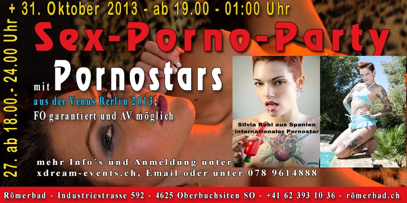 mit Pornostars Sweet Amira und Silvia Rubi aus der Venus Berlin 2013 und anderen sexy GirlsAm Samstag den 02. November findet der Pornostar-Abend im Club Palladium statt. Ab 17 Uhr könnt ihr die Pornostars Sweet Amira aus Deutschland und Silvia Rubi aus Spanien bei mehreren Live-Show-Auftritten sehen. Bei einer Verlosung könnt ihr sogar als 1. Preis eine halbe Stunde mit einem der beiden Pornostars gewinnen. Eintrittspreis 120 CHF incl. Catering. Ab 11 Uhr ist der Club bereits geöffnet.