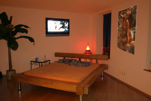 Silvia hat mich in einem schönen Zimmer mit Holzbalken und viele Spiegel geführt. Die hintergrund Musik war angenehm. Das einzige überflüssige war das Fernsehen mit dem Porno. Wer braucht das wenn mann zu zweit mit ein scharfes, williges Mädchen in ein Zimmer zusammen ist?