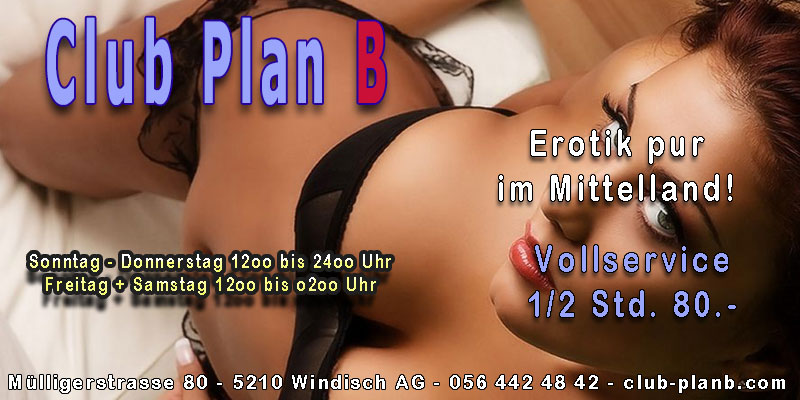 Club Plan B | Saunaclub | Mülligerstrasse 80 | 5210 Windisch | Aargau | Mittelland | Schweiz | Tel +41 56 442 48 42 | https://club-planb.ch/tagesplan/ | Google Maps | Plan-B Club Profil | Plan-B Sexforum | Plan-B Club Berichte |