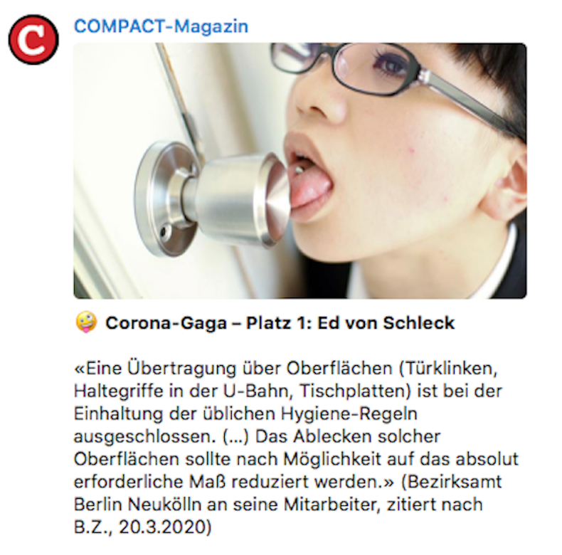 Sobald genügend Kritik aufgekommen ist, beende die Quarantäne und verkünde „das es vermutlich zu früh war zum beenden und es nun auf das Verhalten jedes einzelnen ankommen würde“.