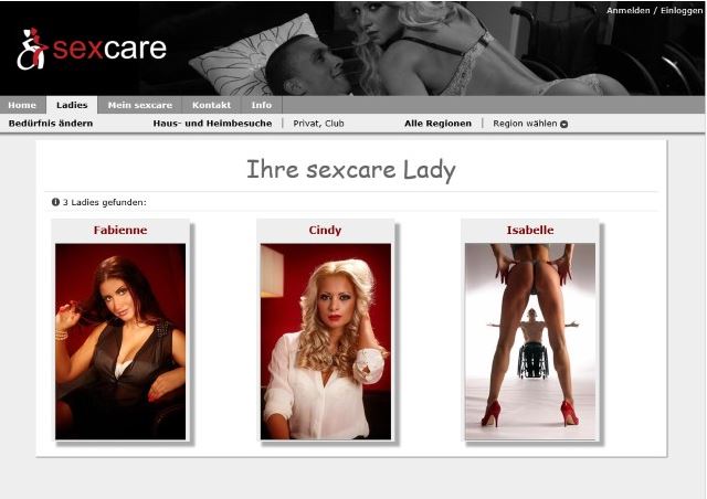 [FONT="]sexcare unterscheidet sich von anderen Erotikseiten für Behinderte primär durch das Angebot: Auf sexcare finden Sie als physisch oder psychisch eingeschränkter Mann nur geschulte und feinfühlige Ladies, welche auf erotische Dienstleistungen für Behinderte spezialisiert sind. Sie finden Sexualbegleiterinnen, die mit Ihrer spezifischen Behinderung umzugehen wissen. sexcare bietet Zugang zu einem sexuellen Erlebnis abseits von oberflächlichen Quickies, bekennt sich aber auch zum Bedürfnis von Behinderten nach Sex, falls dies möglich ist und vom Gast gewünscht wird. Der Name ist bei sexcare Programm. sexcare bietet Behinderten umfassende Dienstleistungen in einer ansprechenden Erlebniswelt. Vom ersten Erkunden der Plattform, über die eigentliche sexuelle Dienstleistung, bis zur fortlaufenden Gästebetreuung fühlt sich der Behinderte verstanden und im Erkunden seiner sexuellen Bedürfnisse unterstützt.