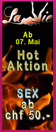 ist ein grosses Banner aufgeschaltet mit dem Text "Ab 07. Mai - Hot Aktion - Sex ab CHF 50.-":
