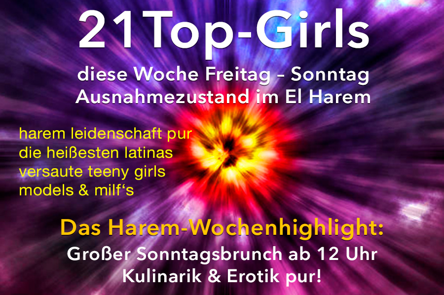 Und nicht vergessen: Heute am 1. Advent erwartet euch im El Harem wieder der beliebte Sonntagsbrunch! Genießt neben kulinarischen Highlights auch die Gesellschaft von über 17 internationalen Top-Girls.