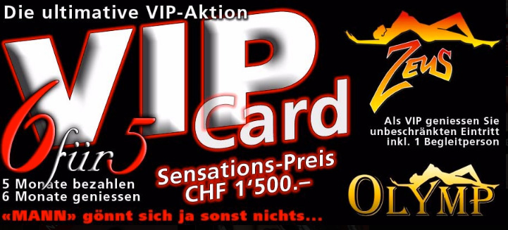 Club Olymp seinen Eintrittspreis / Volltarif; von 50 auf 15.- Fr. inklusive Essen gesenkt