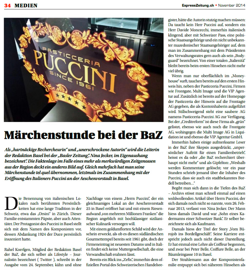 So schuldet Puccini einer Haustechnikfirma aus Basel offenbar einen «namhaften Betrag» für die sanitären Installationen, wie der Buchhalter der betroffenen Firma sagt. Den Namen des Unternehmens will er nicht in der Zeitung lesen. Puccini habe bei dem Haustechnikunternehmen vor Jahren Leistungen unter einem anderen Namen bestellt – aber nie bezahlt. Jetzt sei er unter Angabe eines neuen Firmen- und mit anderem Nachnamen wieder aufgetaucht und habe flüssige Mittel vorgetäuscht.
