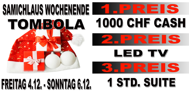 Die Auslosung der Tombola wird nicht wie üblich im Club unter den anwesenden Gästen stattfinden, sondern die Preisgewinner werden schriftlich ab ca. 23:00 Uhr auf der Website publiziert. Genauso wie wir es damals im Zeus praktizierten.