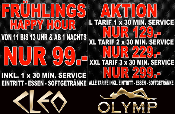 :Alle Frauen vom Cleo-Tagesplan inkl. internationale Pornostars siedeln um ins Olymp. Vor Ort sind damit ca. 50-60 maximum nice Girls anwesend. Schweizweit sind wir der Club mit den meisten Girls. Es werden Hammer-Shows geboten und die Tombola führen wir natürlich morgen im Olymp fort. Ich werde dann auch persönlich im Olymp vor Ort sein, um mich wie gewohnt um Eure Wohlbefinden kümmern zu können. Wir lassen auch in diesen schwierigen Zeiten, die Köpfe nicht hängen und schauen weiter positiv in die Zukunft.