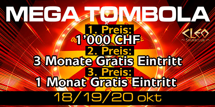 Von Donnerstag 22.10. bis Sonntag 25.10. gibt es täglich eine Mega-Tombola bei uns im Cleo!