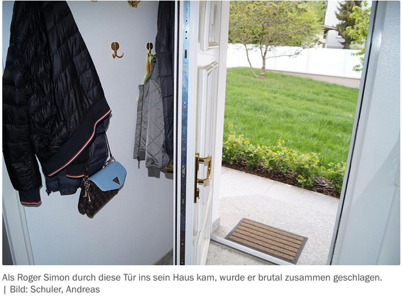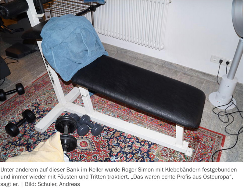 4.30 Uhr: Ein Mitarbeiter Roger Simons wundert sich, warum der Chef immer noch nicht zurück ist und fährt vom Industriegebiet nach Staad. Er hat einen Schlüssel und geht ins Haus. „Ich lag festgebunden auf einer Bank im Keller, als ich oben Schritte hörte.“ Die Täter flüchteten sofort über den Garten, mit sich tragen sie Diebesgut und Bargeld in Höhe von 3000 Euro, das sie Roger Simon weggenommen haben.