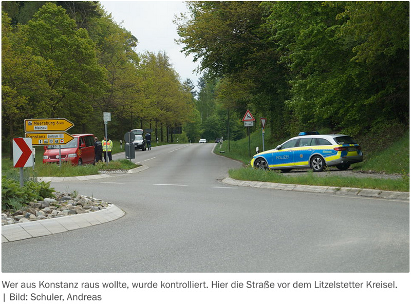 8.30 Uhr: Beamte der Polizei und der Kriminalpolizei suchen verstärkt im Bereich Staad und Lorettowald. „Für die Bevölkerung besteht keine Gefahr“, beschwichtigt die Polizei. Wer an diesem Morgen nach Konstanz oder wieder hinaus möchte, muss mit Verzögerungen rechnen: Jeder Zufahrtsweg wird kontrolliert, jedes Auto, das Konstanz verlassen möchte, muss anhalten, Kofferräume werden geöffnet und Lieferwagen durchsucht.