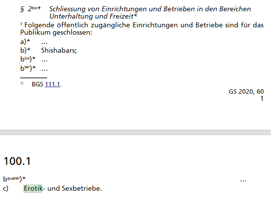 Hier sind Erotikbetriebe plötzlich unter Art. 5abis aufgeführt, zusammen mit Banken, Wellness und anderem. Folgt man diesem Dokument, gehört unsere Lieblingsart von Clubs zu den Dienstleistungsbetrieben und muss an allen Sonn- und Feiertagen komplett geschlossen bleiben, und darf an den restlichen Tagen nur bis 19 Uhr offen sein. Eine Ausnahme an Heiligabend und Silvester bis 01 Uhr gibt es nicht.