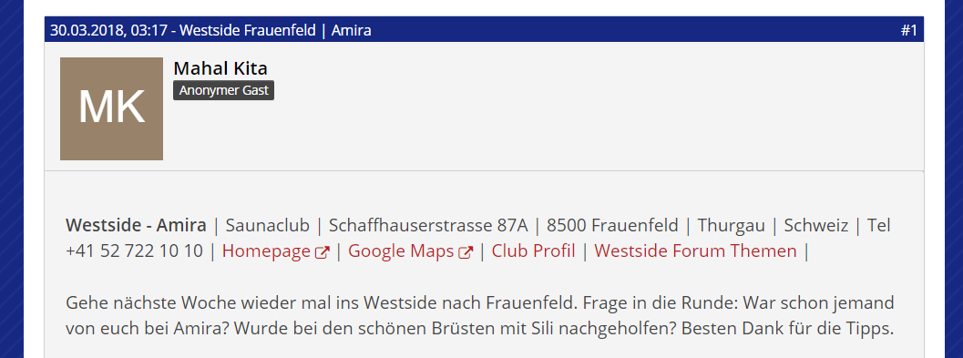 Gestern konnte ich nach langer Zeit wieder mal in Westside nach Frauenfeld gehen. Angekommen wurde ich Herzlich Begrüßt von den Girls und von Amira erst recht. Wir Unterhielten uns und nach kurzer Zeit wollte Sie aufs Zimmer da die scharf sei. Auf dem Zimmer Verwöhnte Sie mich nach allen Regeln der Kunst mit Ihrem Traumbody, BW, GV.