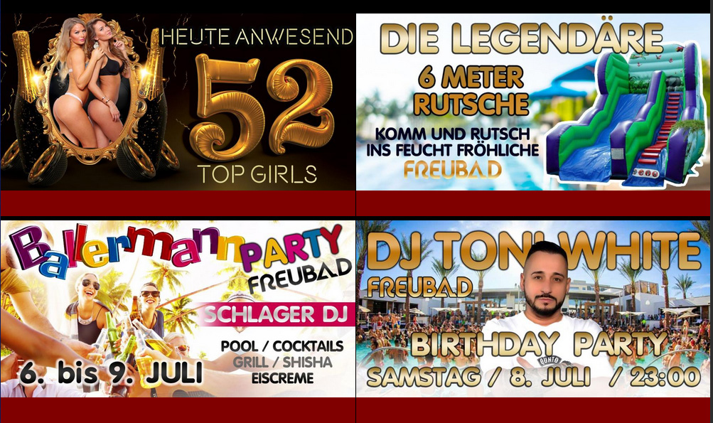 Partys, Specials, Events im Freubad Sexrutsche 6. Juli 2023 Geht dort richtig die Post ab https://www.freubad.ch/