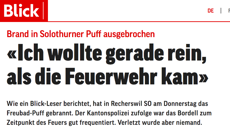 «Ich wollte gerade rein, als die Feuerwehr hinter mir ankam», sagt der Leser zu Blick. Ein Feuerwehrmann habe das Puff laut schreiend betreten und «alle raus, alle raus» gerufen.