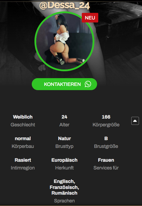 Dessa: schlank, schwarzhaarig, mit einem Sex Appeal, der einfach umhaut. Diese Frau weiß genau, wie sie sich in Szene setzt, wie sie sich bewegt, um jeden Mann im Raum an den Rand des Wahnsinns zu treiben. Verführung? Für sie ein Spiel, das sie bis zur Perfektion beherrscht.