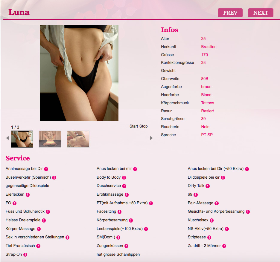 Sedcard von Bia Bia | Studio Mondana | Juwel der Service Oberklasse