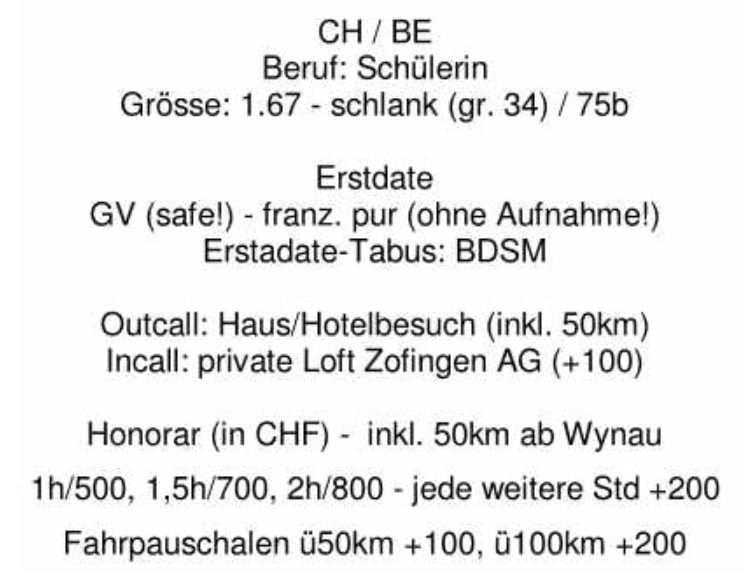 Ihr Körper ist einfach eine Wucht, vor allem ihre echten, eben Swiss made Titten machten mich rattenscharf. Das Date mit Kim machte wirklich viel Spass und hat ein hohes Wiederholungspotential